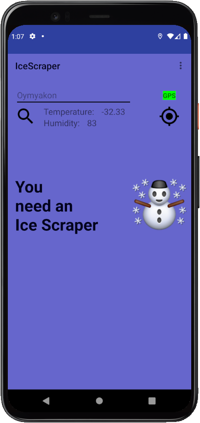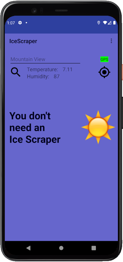 IceScraper contacts a third-party webservice. Using the GPS coordinates or the entered location, the corresponding weather data is called up and displayed.